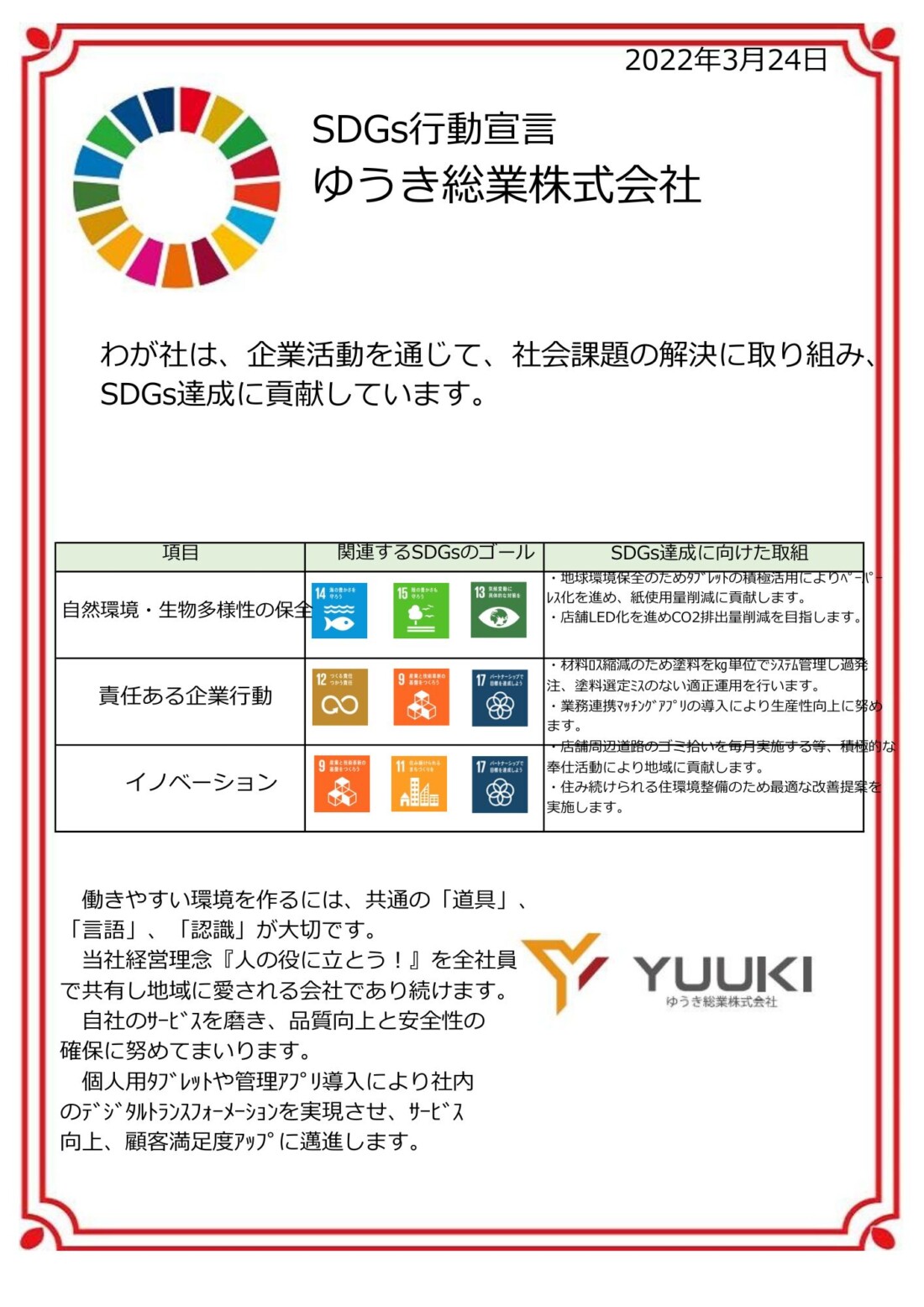 ゆうき総業のSDGsの行動宣言は、山形銀行のホームページも掲載されています。
